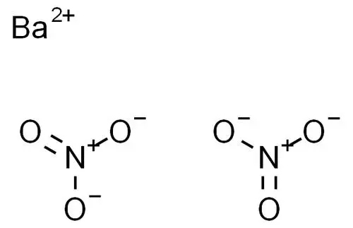 硝酸钡(barium nitrate),是一种无机化合物,化学式为Ba(NO3)2,分子量261.337,密度3.24g/cm3,溶于水,浓硫酸,不溶于乙醇、浓硝酸。硝酸钡为白色结晶性粉末,微具吸湿性,有强氧化性。CAS No.10022-31-8。