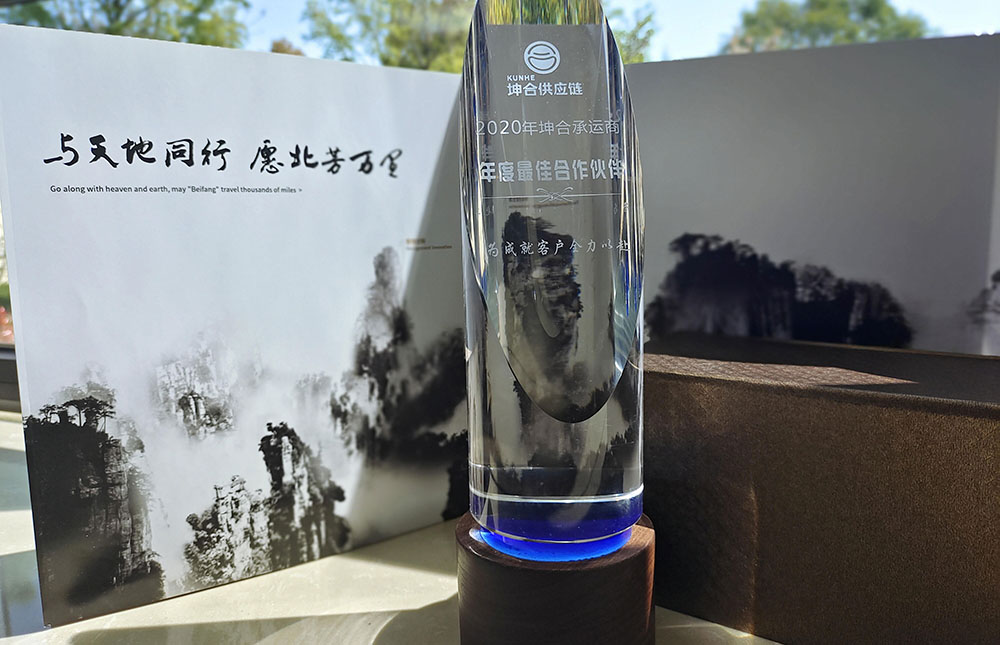 博彩平台大全荣获震坤行“坤合供应链-2020坤合承运商年度最佳合作伙伴”奖项