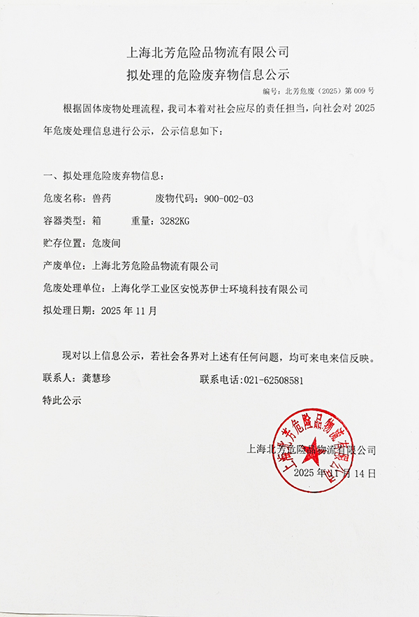 上海博彩平台大全危险品物流有限公司拟处理危险废物的信息公示2025009