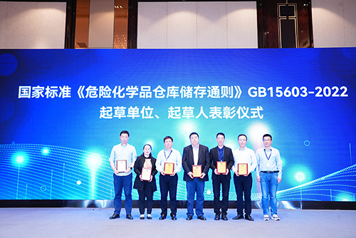 会上,全国安全生产标准化技术委员会化学品安全分技术委员会与GB15603-2022《危险化学品仓库储存通则》标准起草小组,带来了关于GB15603-2022的首次官方解读。中国仓储与配送协会危险品分会的林震宇秘书长分享了标准起草过程与文本内容,应急管理部化学品登记中心李运才处长对“储存配存”做了十分详细的解释说明。分享结束后,TC288SC3(全国全国安全生产标准化技术委员会化学品分技术委员会)对包括博彩网站推荐在内的起草单位进行了表彰,博彩网站推荐董事长浦林祥先生和行政运营总监龚慧珍女士则获得了标准起草人表彰证书。